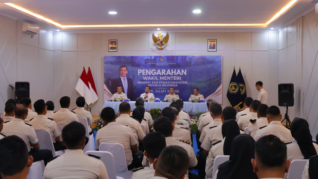 Serang – Kepala Kantor Imigrasi Kelas I Non TPI Serang, I Gusti Agung Komang Artawan, mengikuti kegiatan pengarahan yang disampaikan oleh Wakil Menteri Imigrasi dan Pemasyarakatan, Silmy Karim, di Lembaga Pemasyarakatan (Lapas) Kelas IIA Serang pada Senin, 6 April 2026.
